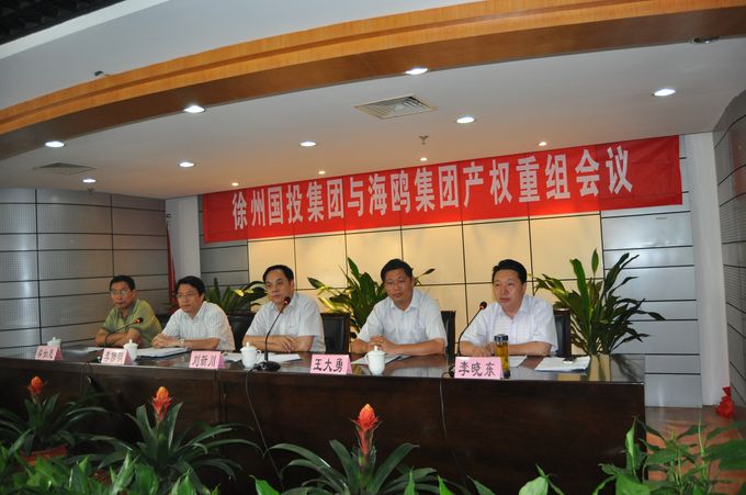 7月8日下午,徐州國投集團(tuán)與海鷗集團(tuán)產(chǎn)權(quán)重組會(huì)議在集團(tuán)公司12樓會(huì)議室隆重召開。市國資委黨委書記、主任劉新川、市國資委黨委委員、副主任王大勇、集團(tuán)公司黨委書記、董事長李修明及領(lǐng)導(dǎo)班子成員、海鷗集團(tuán)主要負(fù)責(zé)人梁如意等相關(guān)領(lǐng)導(dǎo)出席了會(huì)議。會(huì)議由集團(tuán)公司黨委副書記、總經(jīng)理李曉東主持。